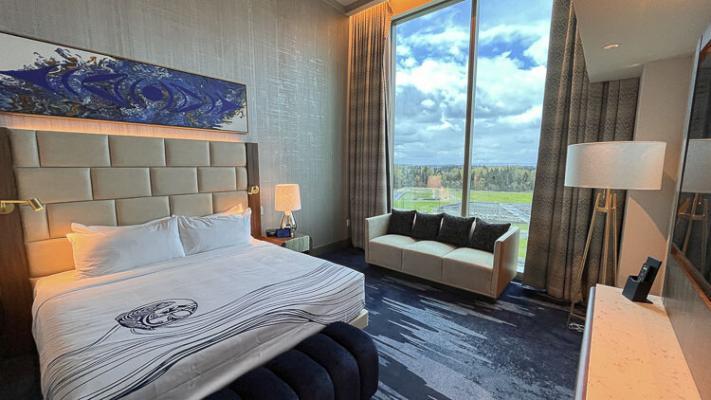 A range of guest accommodations are available in the 28 spacious suites. The Executive Suite is the epitome of luxury, boasting approximately 1,600 square feet, with an elegant living area complete with plush seating and two guest rooms. Sprawling Deluxe Suites offer more than 1,300 square feet, including living, kitchenette and dining areas and a separate bedroom with a king-sized bed. Corner Suites offer 180-degree floor-to-ceiling views of the Cowlitz Indian Tribeโs reservation and either the Coast Range or the Cascade Range, with Mount St. Helens in the distance. King and Queen Guestrooms are ideal for on-the-go visitors who desire high-end features โ such as sparkling tile bathrooms with walk-in showers, in-room dining menus, complimentary Wi-Fi and movies on demand, large-screen televisions and Keurig coffee โ in between gaming, concerts, shopping, dining and other area activities.