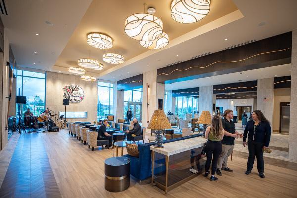 RIDGEFIELD โ ilani Hotel celebrated its grand opening with a ribbon-cutting celebration on Monday (April 24). Held at the threshold of the Cowlitz Cultural Corridor, which connects the new hotel to the casino, the ceremony featured the tribal drum group, a blessing by the Cowlitz Indian Tribeโs spiritual leader, and brief remarks from tribal, project and local leadership. Following the ceremony attendees had an opportunity to tour the property and its amenities.