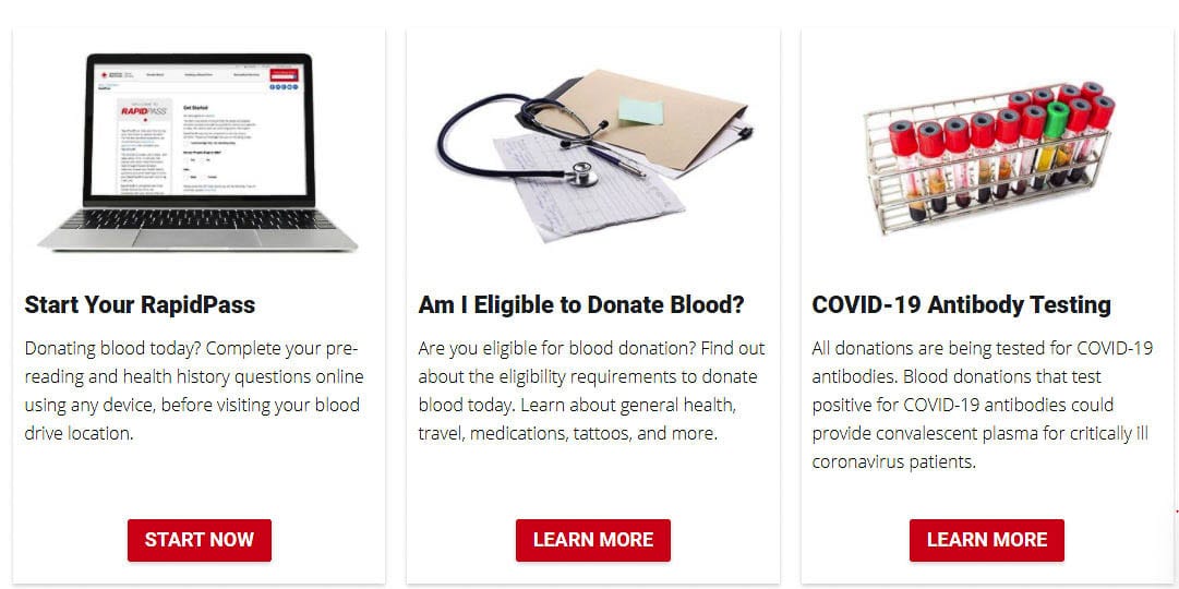 There are multiple ways you can give blood to help. Most important is the COVID-19 Convalescent Plasma Program. The Red Cross, in partnership with the FDA, is playing a critical role in a new initiative to collect plasma, called convalescent plasma, from those recovered from COVID-19. Convalescent plasma has specific antibodies to COVID-19 making it a potentially lifesaving treatment for those with serious COVID-19 infections. If you have recovered from COVID-19 learn more about this program and how to help.