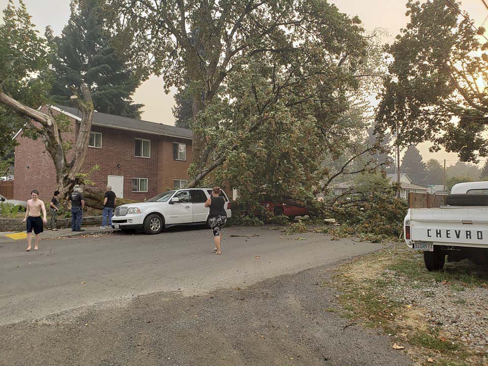 Others posted photos of downed trees and power lines, including one tree that fell on some vehicles parked along East 32nd Street at Grand Blvd in Vancouver.