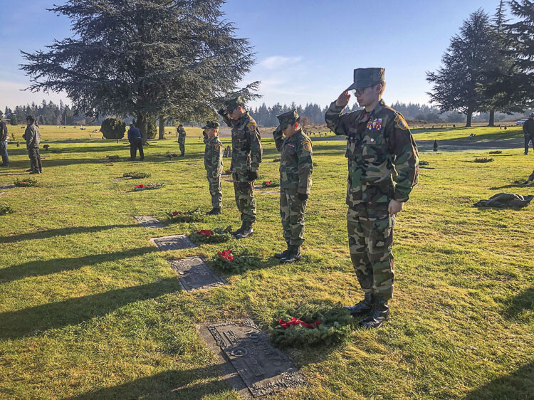 The Lewis and Clark Young Marines were asked to say the veteran’s name while placing the wreath, followed by a slow salute.