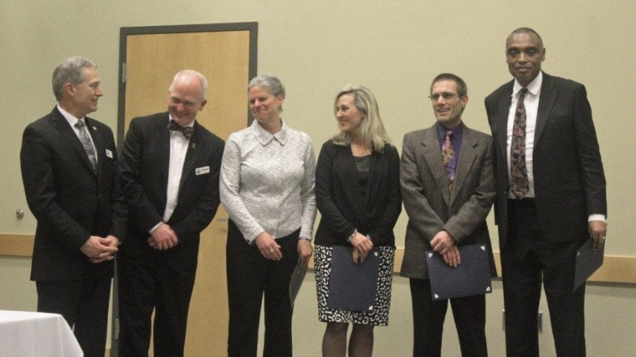 Greg McKelvey, director of bands at Battle Ground High School, was presented with the 2016 Teacher of the Year award. He has taught music in the public schools for more than 35 years.
