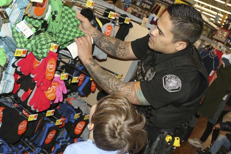 On Saturday (Dec. 9), 14 of Battle Ground’s finest had the pleasure of accompanying 20 local children on a shopping spree as they bought gifts for their loved ones and items for themselves. Participating children were nominated by staff from Battle Ground Public Schools and by members of the police department.