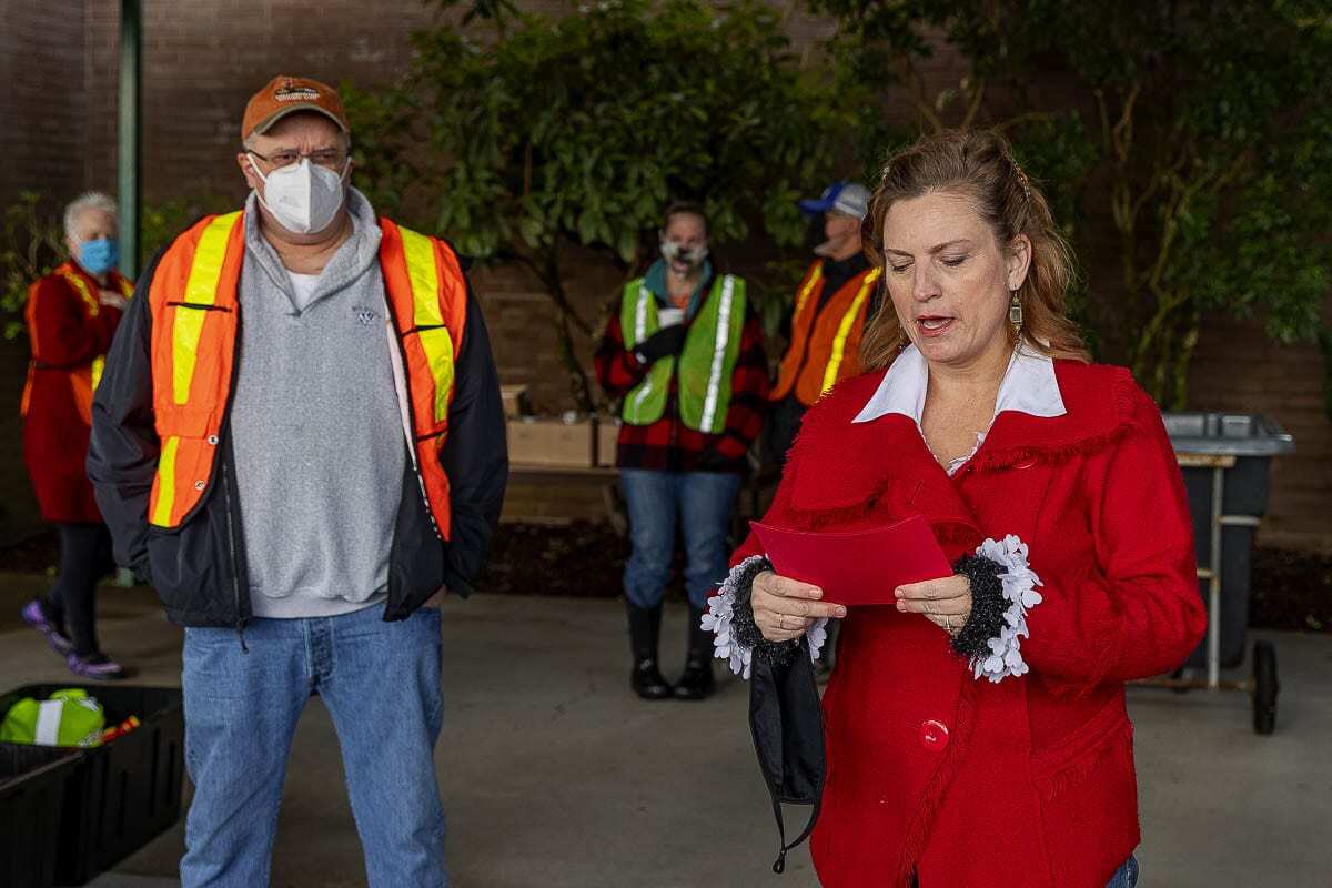 BATTLE GROUND — A common sight during this pandemic year has been a line of vehicles working their way through the Lewisville Intermediate campus in Battle Ground, as dozens of volunteers hand out boxes of food to families in need.
