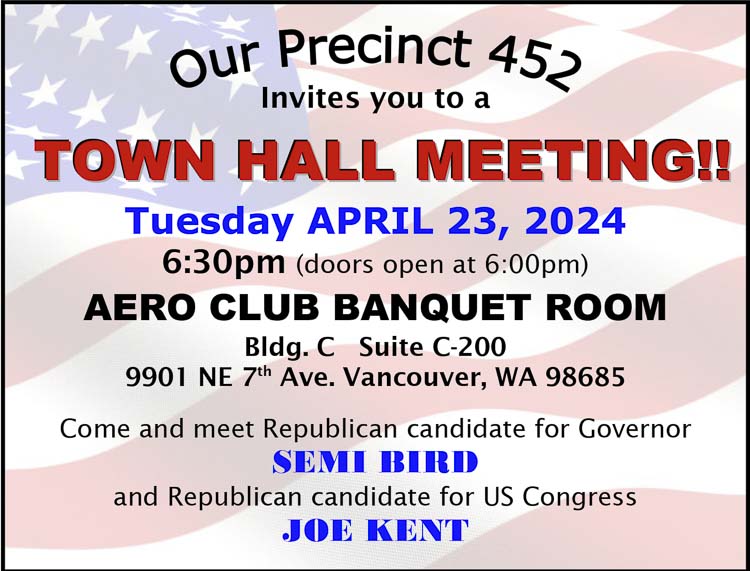 Clark County Republican Party (CCRP) Precinct 452 will host a town hall meeting Tuesday in Hazel Dell.