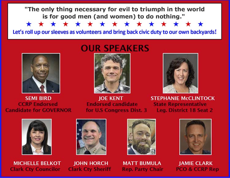 Other speakers will include State Rep. Stephanie McClintock, Clark County Councilor Michelle Belkot, Clark County Sheriff John Horch, CCRP Chair Matt Bumala and PCO and CCRP Rep. Jamie Clark.