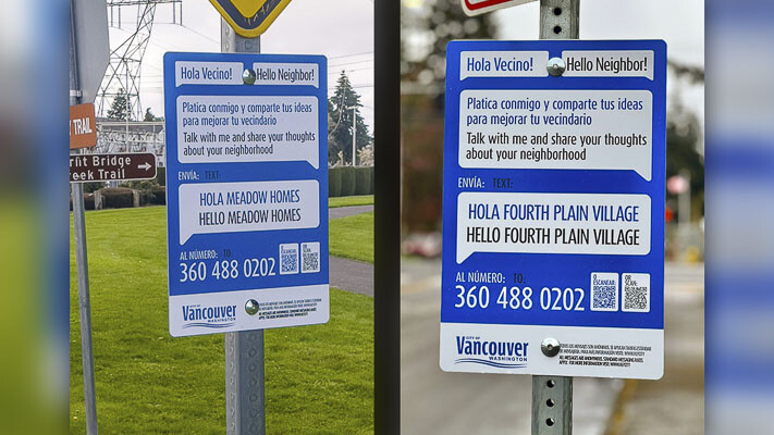 VANCOUVER – The city of Vancouver is launching a first-of-its-kind effort to reach people where they are in central Vancouver as part of its Fourth Plain for All community investment strategy. Keep an eye out for strategically located new signs inviting the community to chat with the city of Vancouver via text message. If you live, work, visit or go to school in central Vancouver, the city wants to hear from you.