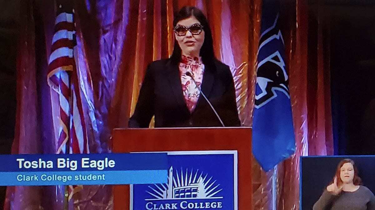 After prison, it was difficult for Big Eagle to find employment. Once she gave birth to a son, she decided to invest in her education and enrolled at Clark College. She is pursuing a Bachelor’s in Human Development at Washington State University Vancouver and completing a certificate to become an addiction education counselor at Clark College.