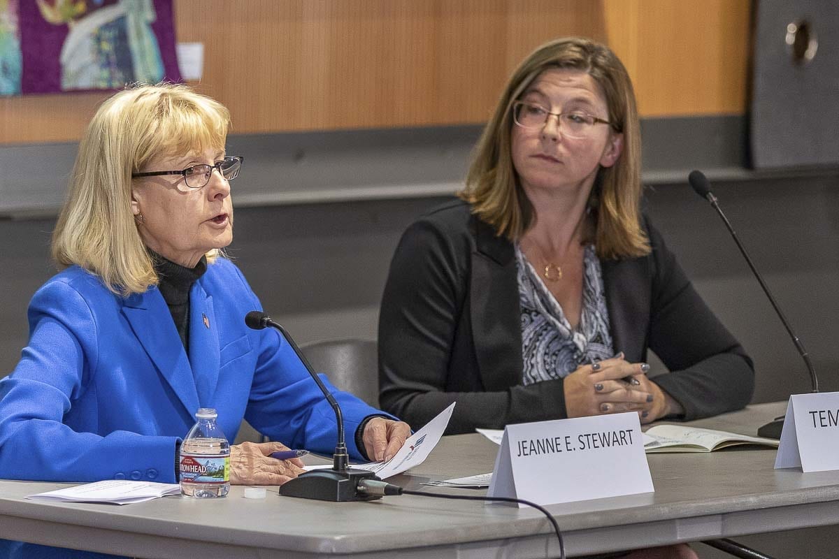 Incumbent Jeanne E. Stewart, who is running as a Republican, squared off with her opponent Temple Lentz, who is running as a Democrat. Both were allowed a minute and a half to respond to nine pre-written questions, presented by a moderator.
