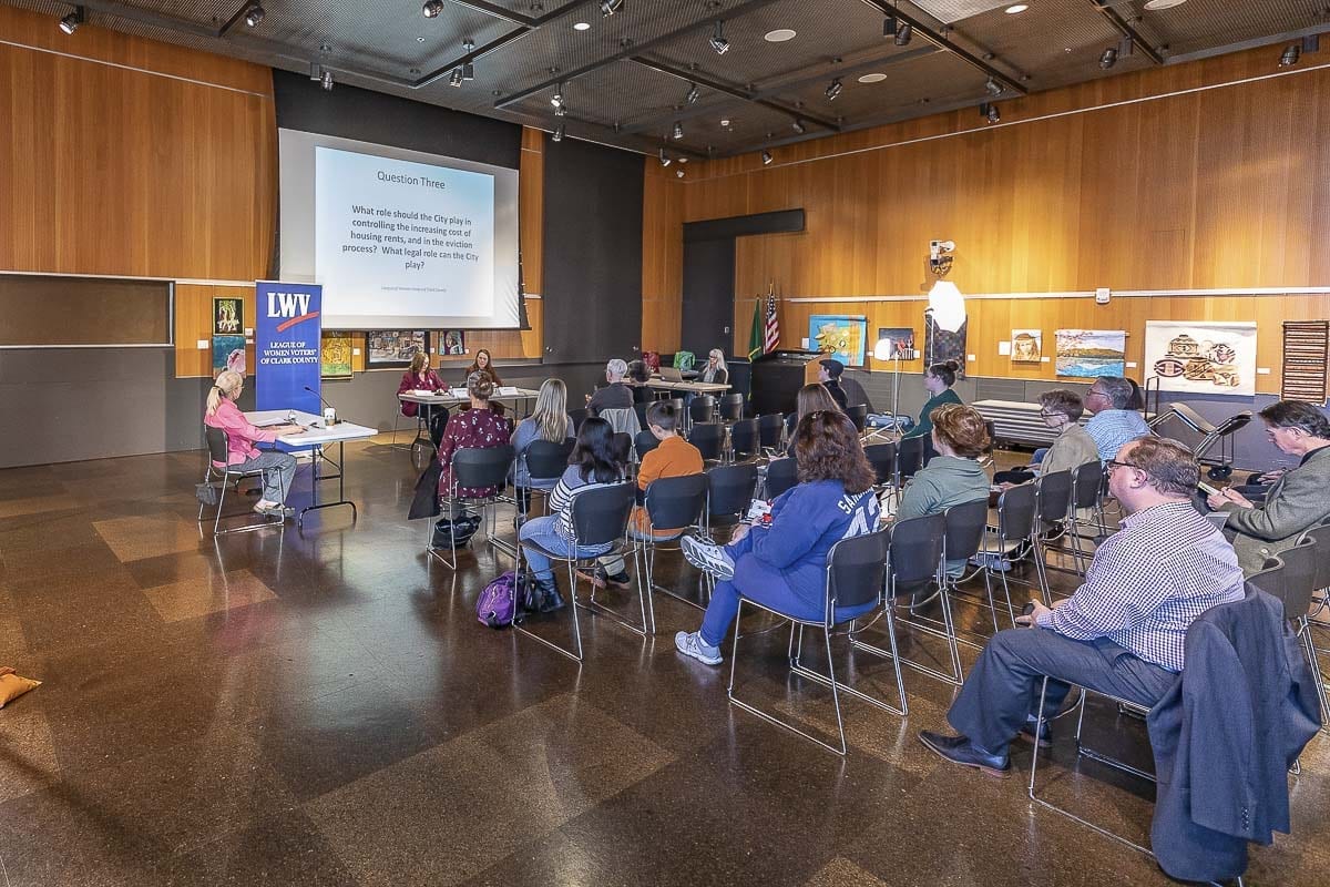 VANCOUVER — Candidates for Clark County Council’s District 1 position debated during a forum Tuesday night, hosted by the League of Women Voters at the Vancouver Community Library.