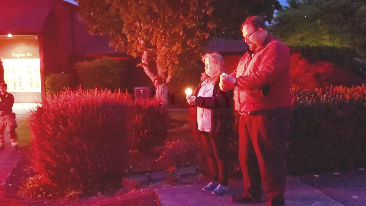 Paul and Ellen Krane visited Station 63 in Salmon Creek and lit candles to go with the emergency lights.