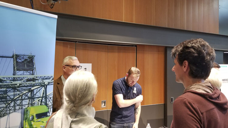 The library’s community room had a long line of people waiting for the 5 p.m. start. Tables were set up around the room with information and staff to answer questions. The IBR program is planning numerous activities throughout 2023 to seek community feedback and engage the public as part of their environmental impact review process.. Another community forum will be held on Hayden Island, June 6.