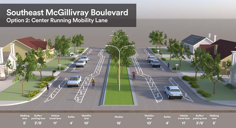 The city has been working on plans to improve safety along SE McGillivray Blvd in east Vancouver. Currently, the McGillivray Boulevard Safety and Mobility Project is considering two proposals, and both eliminate a lane of motor vehicle traffic in each direction.