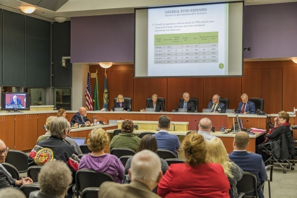 Sales tax revenue has risen by an even greater rate than property taxes in Clark County during recent years, increasing from $22 million in 2009 to $36 million in 2016. Despite that, McCauley and his budget staff used a projected 4 percent increase in sales tax in their model going forward. County staff also pointed out that a planned annexation by the city of Vancouver in the Green Meadows/Costco area will result in a loss of revenue beginning in 2018.