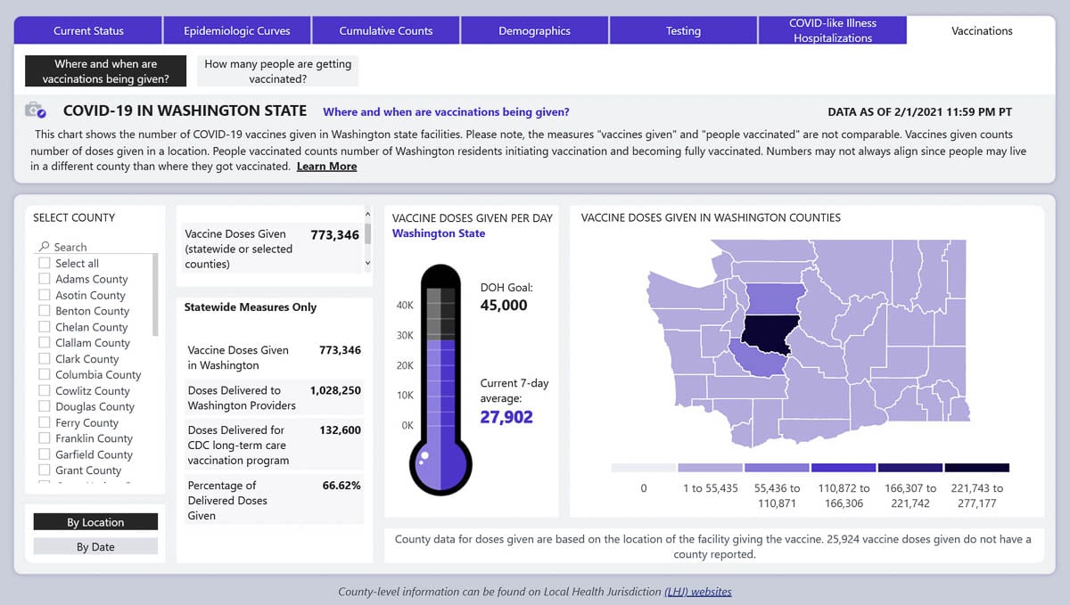 According to the Washington State Hospital Association (WSHA), their member hospitals had reported 467,041 vaccine doses received, with all by 30,000 of those administered as of Jan. 30.