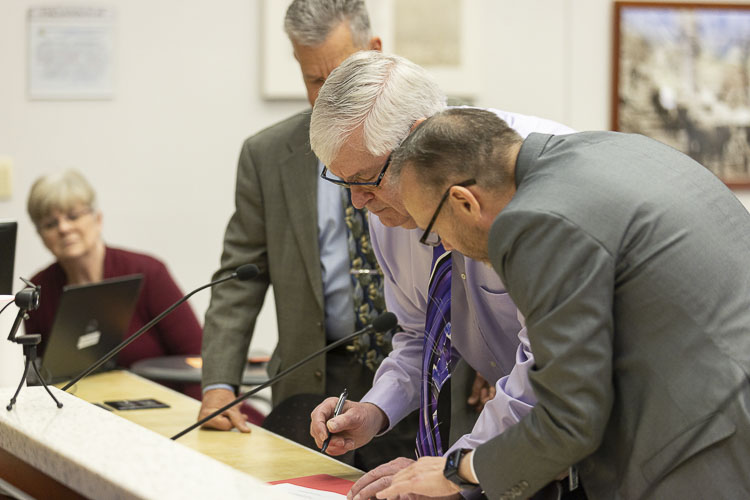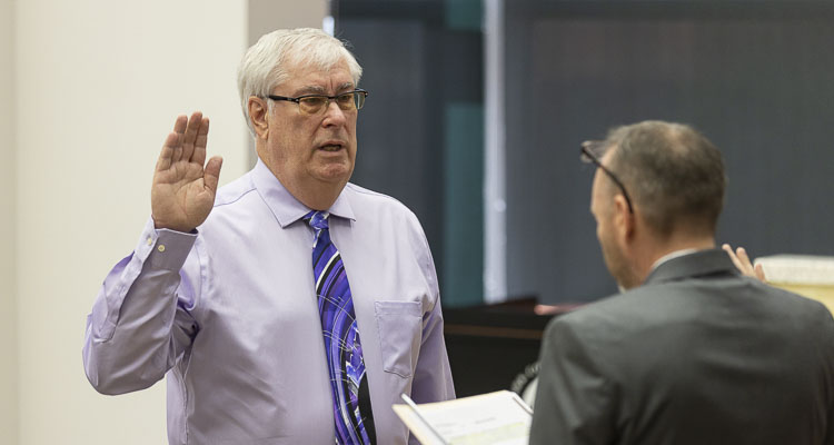 Battle Ground resident Dick Rylander was sworn in to the District 5 seat on the Clark County Council Tuesday morning. County Clerk Scott Weber presided over the swearing-in ceremony, after which Rylander took his seat on the council for its scheduled meeting.