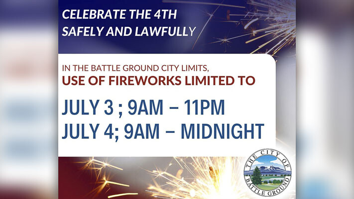 “The use of fireworks can lead to unintended injuries and fires,” said Battle Ground Fire Marshal Chris Drone, “It is important that you use every safety measure if choosing to use fireworks.”