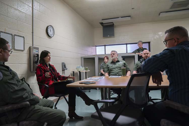 Earlier in the day, Rep. Gluesenkamp Perez visited the Clark County Jail, where she spoke with staff, corrections officers, and Clark County Councilors Sue Marshall (District 5) and Wil Fuentes (District 3). The group discussed staffing and facility constraints and how the Congresswoman can assist at the federal level to ensure corrections officers have necessary resources to support rehabilitation, behavioral health efforts, and reductions in recidivism, while remaining safe at work and having the support they need to thrive.
