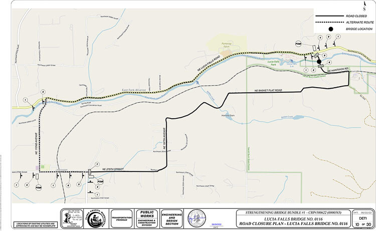 Traffic will be redirected around the bridge via Northeast 172nd Avenue and Northeast Lucia Falls Road. Drivers should follow the directions of signage and flaggers. A map of the detour route can be found on the project website.