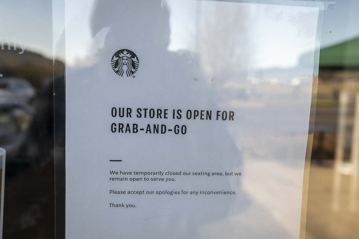 Restaurants can provide take-out or delivery service during the closure. Pictures online showed several Starbucks locations with all chairs removed, enforcing the point that any drink order had to be taken out of the building.