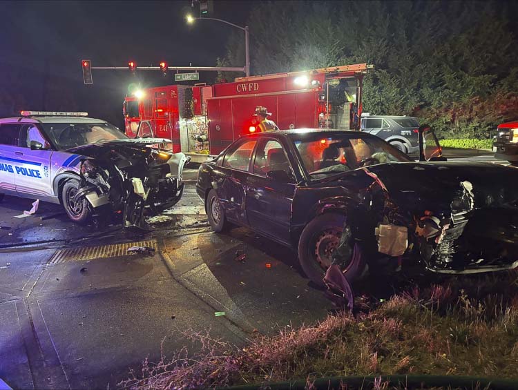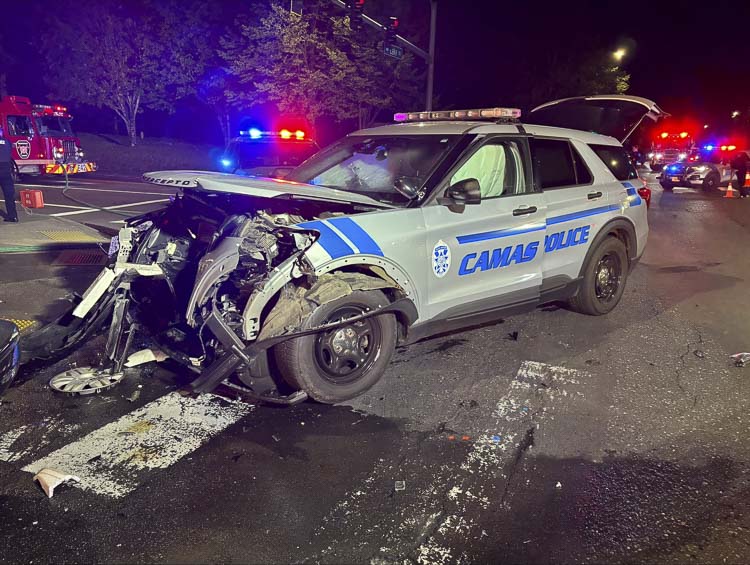 CAMAS — During the evening hours Sunday (Sept. 8), an on-duty patrol officer, driving a fully marked patrol car, was involved in a two-vehicle collision at the intersection of NW Lake Rd. and NW Parker St. in Camas.