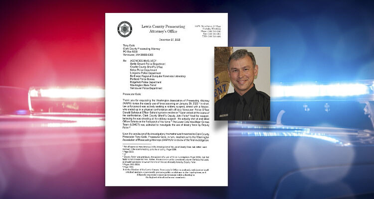 “Today CCSO received a copy of the WAPA review from the Clark County Prosecuting Attorney’s Office,’’ read a CCSO statement issued Wednesday evening. “This review was part of the use of force investigation process selected by Prosecuting Attorney Golik and further action in this case now rest with his office.