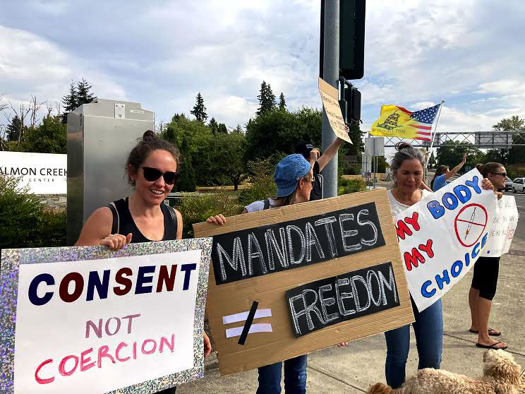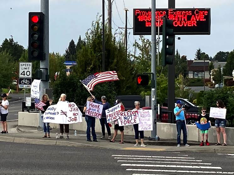 PeaceHealth Southwest and Kaiser Permanente announced COVID-19 vaccine requirements for their employees on Aug. 3, followed closely by Gov. Jay Inslee’s statewide mandate for all healthcare workers and state employees on Aug. 9. Immediately, hundreds of healthcare workers in Southwest Washington began to mobilize against the mandates.