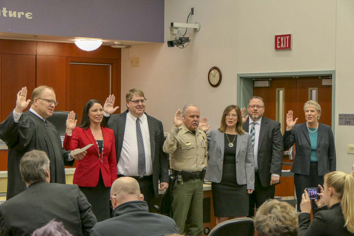 CLARK COUNTY — Six elected officials started off their New Year’s Eve day taking the oath of office in front of a packed house in the County Council chambers.