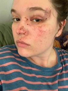 “I noticed the blood dripping down,” she says.