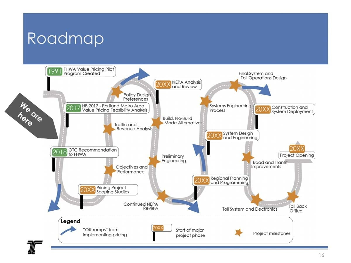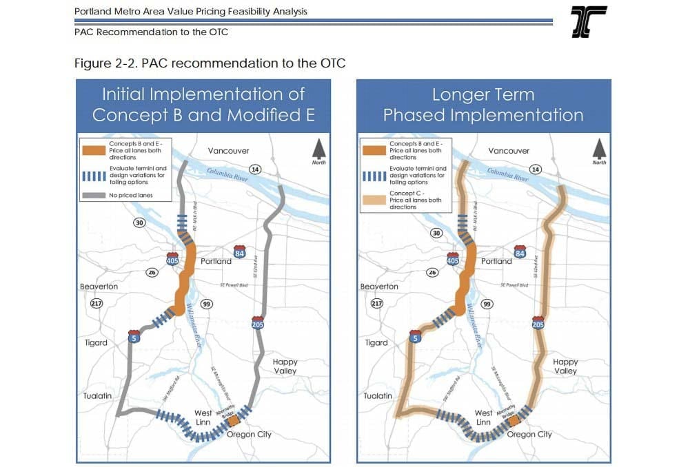 It’s unclear exactly which direction OTC could take from here. The recommendation made by ODOT and their consultants was to put a toll on I-5 through downtown Portland, and I-205 at the Abernathy Bridge, with eventual expansion to all of I-5 and I-205. The commissioners have indicated they would also like to see about further study into tolls on other Portland-area freeways, though it’s unlikely any such recommendations would make it into the final proposal sent to the Federal Highway Administration by the end of the year.