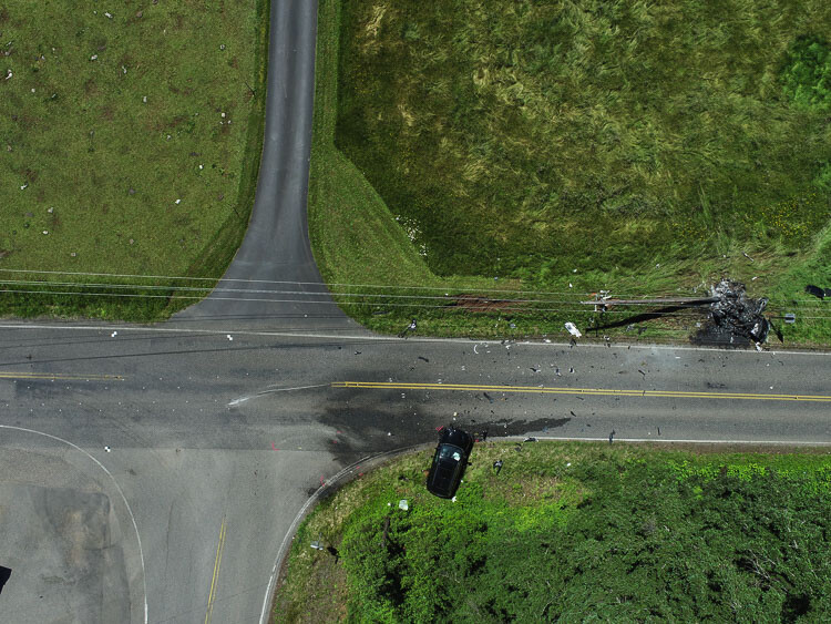 As Russo’s Jeep entered NE 212th Ave., the right front of the Chevrolet impacted the left front of the Jeep. The force of the impact caused the vehicles to rotate and exit the roadway. The Chevrolet sheared a utility pole and then caught fire. Bystanders used fire extinguishers to keep the fire at bay while others removed the occupants.