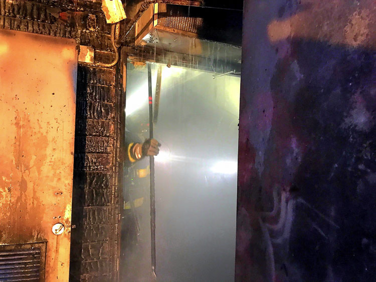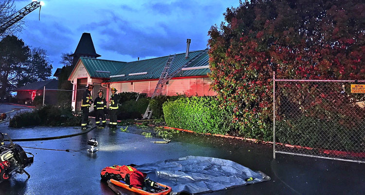 The first fire crews arrived just five minutes after the original call, which came at 5:41 a.m., and found fire outside of the building. The fire was spreading inside the building and firefighters stretched several hose lines to attack the fire.