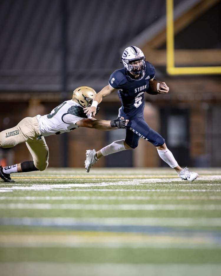 Jake Kennedy just kept doing Jake Kennedy things for the Skyview Storm on Friday night. The quarterback, who can get things done through the air or on the ground, had two touchdown runs for the Storm in a 28-0 victory over the Crusaders.