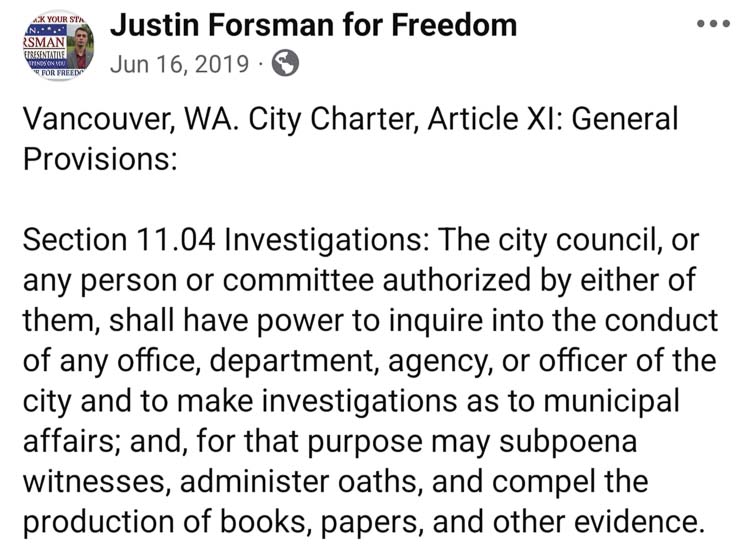 Several years ago, our City Charter — specifically Section 11.04 — included a clause that empowered individual City Council members to investigate potential misconduct. It granted real authority: subpoena power, access to documents, and the ability to question witnesses under oath. It was a vital safeguard.