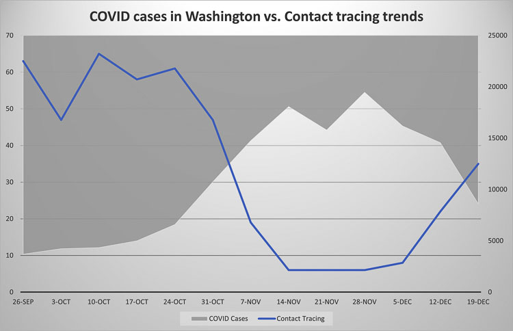 In the state’s contact tracing program, staff from the Washington State Department of Health (DOH) attempt to contact people who have tested positive for COVID. Staff provide patients with information and help determine who they have been near in the past few days. It is voluntary and people are not required to respond, but those I have spoken with who received a call say it was helpful.