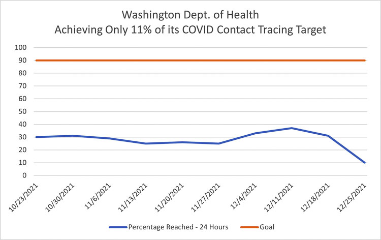 The most recent outbreak is a good example. As the number of COVID cases increased across the state, the percentage of people contacted by DOH in the first 24 hours fell from an already paltry level of about 35% to just 10%. This is just 11% of DOH’s self-imposed target of reaching 90% of COVID patients.