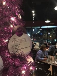 Community members can participate in the Be a Santa to a Senior program simply by finding a participating Be a Santa to a Senior location, remove a bulb with a senior’s gift request from the purple tree, purchase the requested gift(s) listed on the bulb and place the bulb and the unwrapped gift(s) in the designated box.