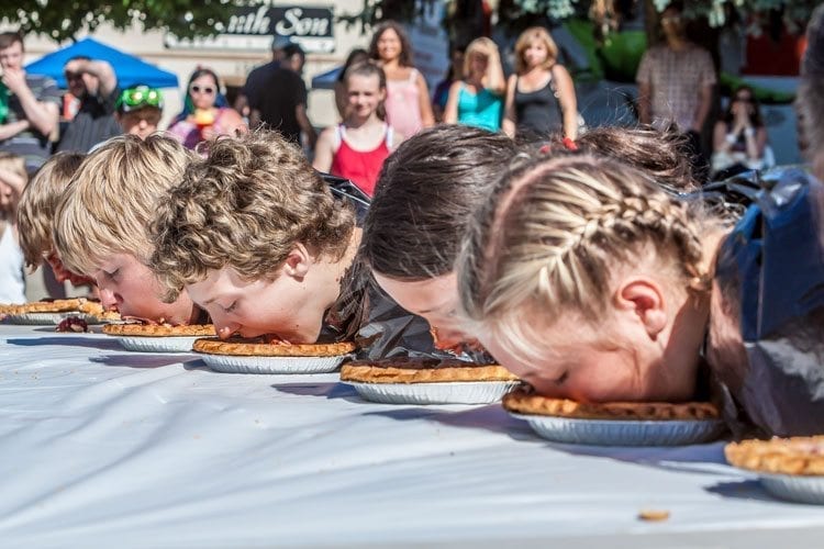 The popular Pie Eating Contest will take place on the stage at 2:15 p.m. Participation is free to those under 18 years. Participants can sign up at the souvenir booth.