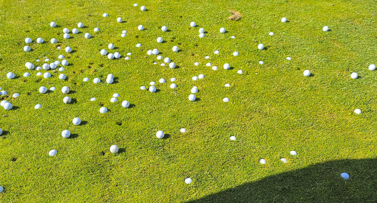 It was a soft landing for those golf balls. Many plugged straight into the ground, still wet after a rainy spring. Others scattered a bit after the touchdown.