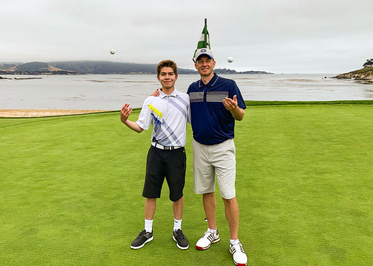 Camden Mills and his dad Gary, with the help of Titleist Hat Man, made it on time to Pebble Beach with an hour to spare.