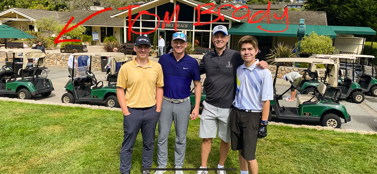 The starter on the first tee told the group they had just missed Tom Brady. Oh wait, there he is, the starter said. Yes, Tom Brady was getting ready to play. The group took a picture, with Brady in the background.