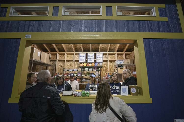 “We have our fan gear out here, and we have a new snack shop that we got this year. People are coming to the game who aren’t even Seton families now,” said Lisa Ackerman, the president of the booster club. “We’ve got the community coming.”
