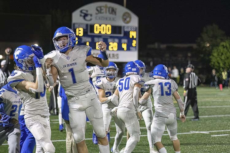 After being shut out for most of the game, La Center scored two touchdowns in a little more than two minutes to take the lead. Then the Wildcats had to play defense one more time to keep that lead.