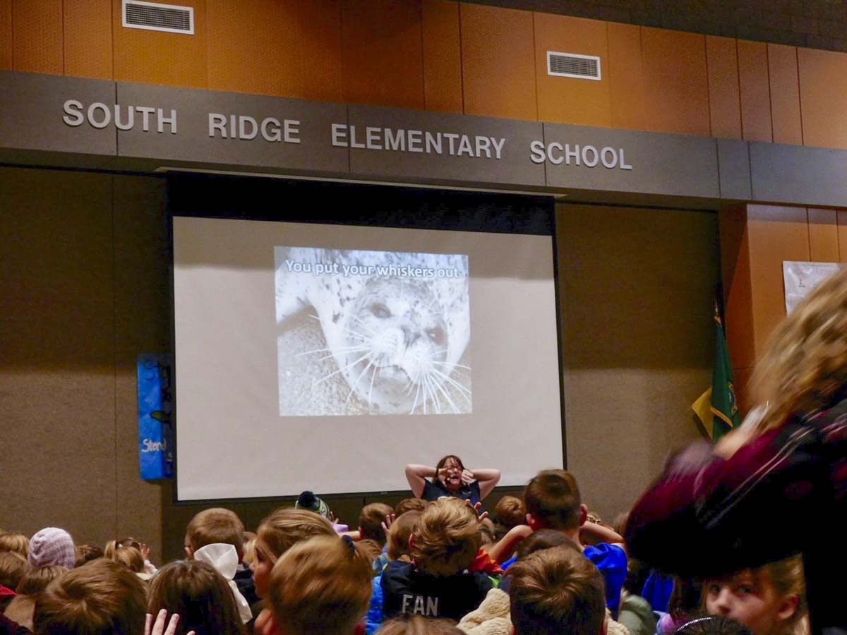 RIDGEFIELD — The Oregon Coast Aquarium is hours away from South Ridge Elementary School — but the coast felt a lot closer when Aquarium staff came to visit. They brought a fun program, “Flippers, Fur, and Fun”, to entertain and educate students on marine mammals.