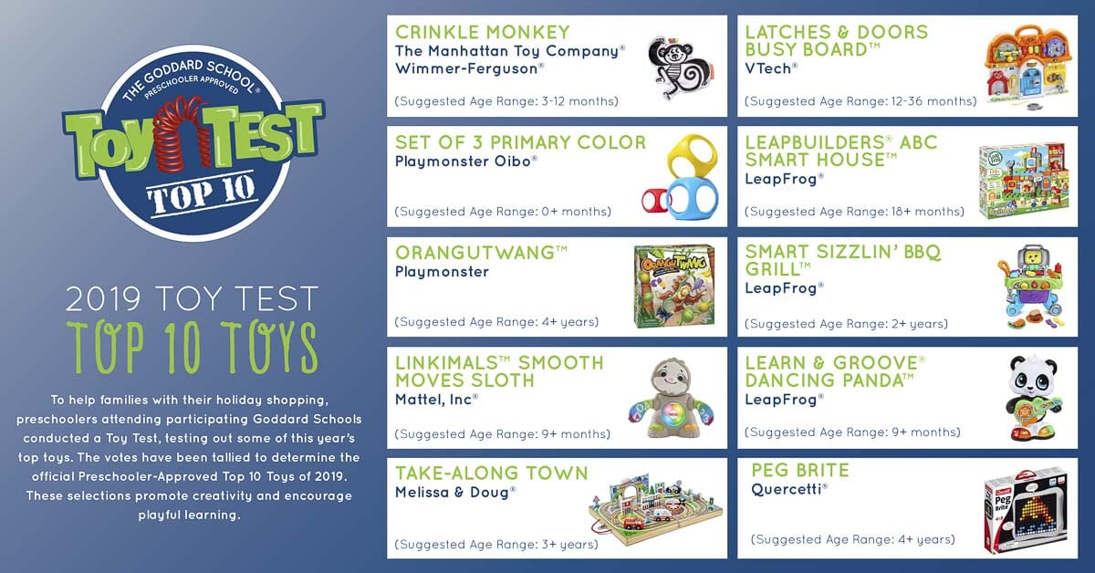 Children at The Goddard School in Salmon Creek tested a whole array of toys in September for children from zero to six years old and up. Last week, the school released the children’s top 10 picks.