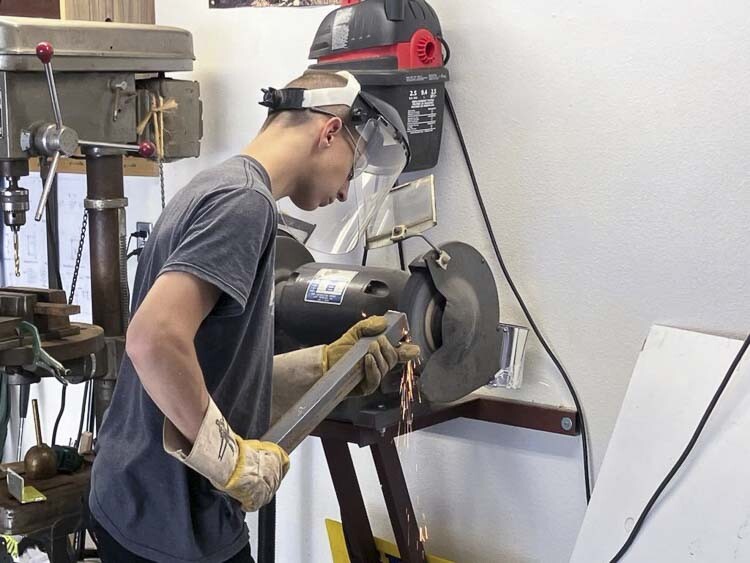 Watering and gardening volunteers had become limited to those who could manage the hoses. Not anymore! Volunteers will now see a new and improved shed interior! Thanks to Harris, assisted by PAC (Parkersville National Historic Site Advisory Committee to the Port) member Jeff Carlson, the indoor space is now solid and organized. Carlson supervised Royer in the fabrication and installation of new brackets and shelves which required welding, drilling and careful measuring, done inside Carlson’s home workshop. Carlson, a retired IronWorker, has a long resume of working on large projects including Bonneville Dam and the Golden Gate Bridge. He seized the opportunity to assist Harris meet his vision for a larger Eagle Scout project. Harris put in countless hours this summer working on his Eagle Scout projects that are now completed.