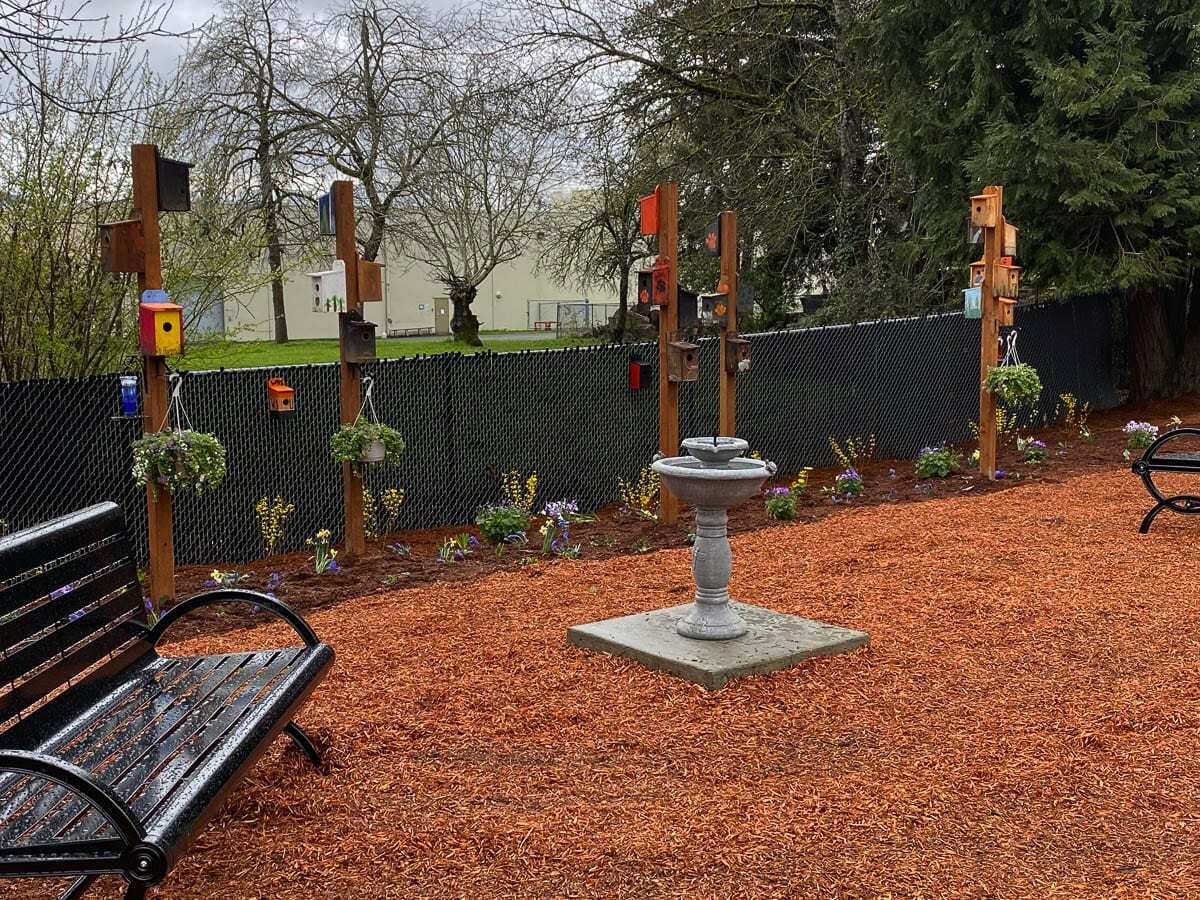 WASHOUGAL — Washougal High School students’ woodworking skill and creativity is on display at the new Downtown Community Garden at 2036 Main Street in Washougal. Decorated cedar bird houses, many with a Washougal High School theme, sit atop poles along an edge of the park with a bird bath and benches set nearby.