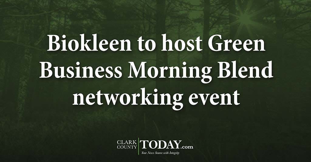 Clark County’s Green Business program is hosting its Morning Blend networking event 8-9:30 a.m. Thu., May 16 at Biokleen, 5408 N.E. 88th St. Morning Blend is an opportunity for business representatives to network, discuss green business initiatives at workplaces, and learn about solutions for reducing our environmental impact.