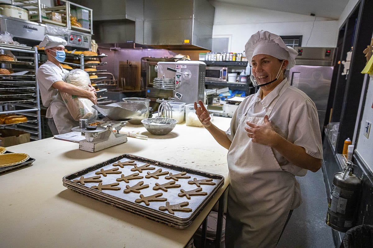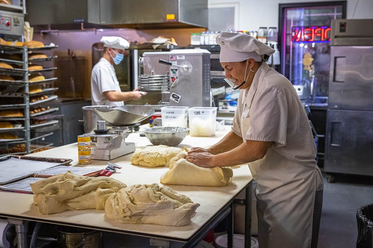 On a typical day, the morning bakers arrive between 3 and 4 a.m. During the holidays, it is not unusual for the workday to begin at midnight.
