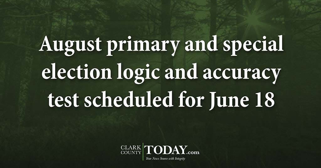 VANCOUVER — August primary and special election logic and accuracy test scheduled for June 18, 2019